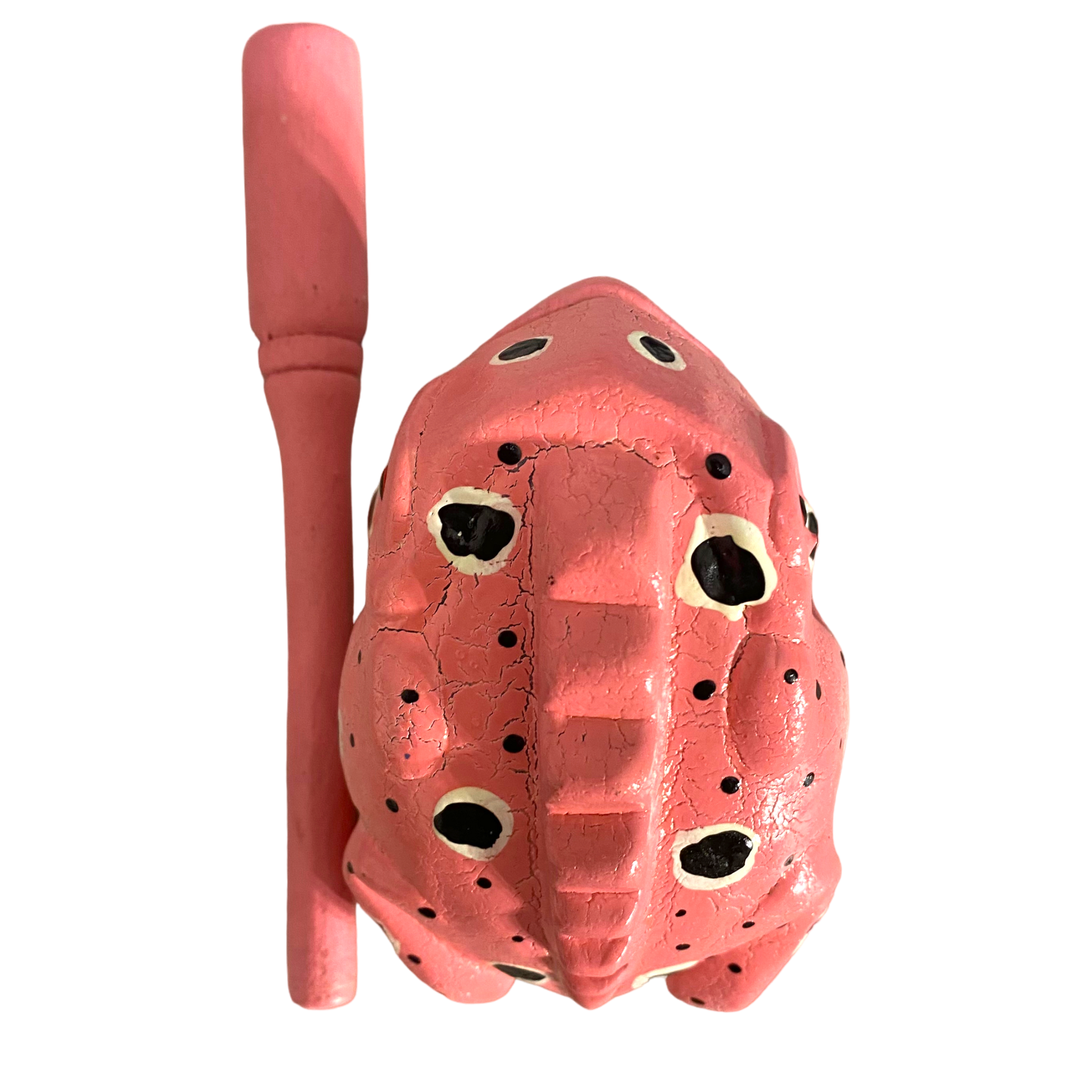 You can enjoy the soothing sound of a frog any time, and anywhere! Completely unique, the wooden croaking frog really does sound as it does in nature when you gently use the small wooden mallet and stroke its back, enabling it to make a croaking, “ribbit ribbit” sound. The wooden croaking frog is completely handmade and uniquely constructed in Thailand, covered in detail and constructed with quality craftsmanship. Rest the mallet in the mouth of the frog for safe-keeping and remove it when you are ready to play. The wooden croaking frog makes a great gift for frog lovers of all ages; or for children who express an interest in animals, music, or simply need to keep their hands busy. After all, the soothing sound of a frog beats the beating of a drum or strumming of a guitar! Plus, it’s affordably priced and makes a great collector’s item for all to enjoy for years to come.