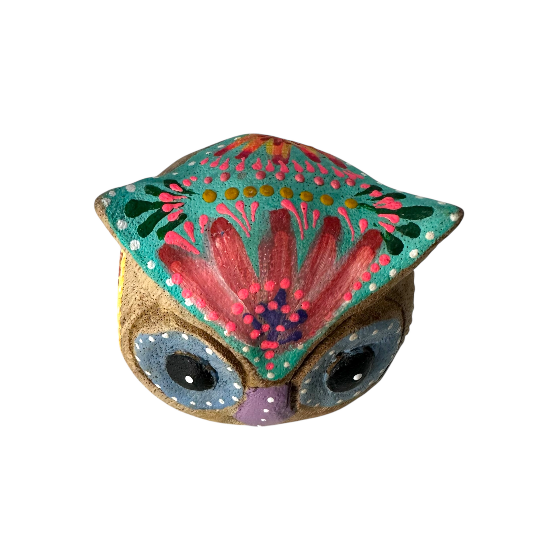 A rustic-style wooden owl with blue floral details, hand-carved and painted to perfection. Ideal for boho or farmhouse-themed décor.