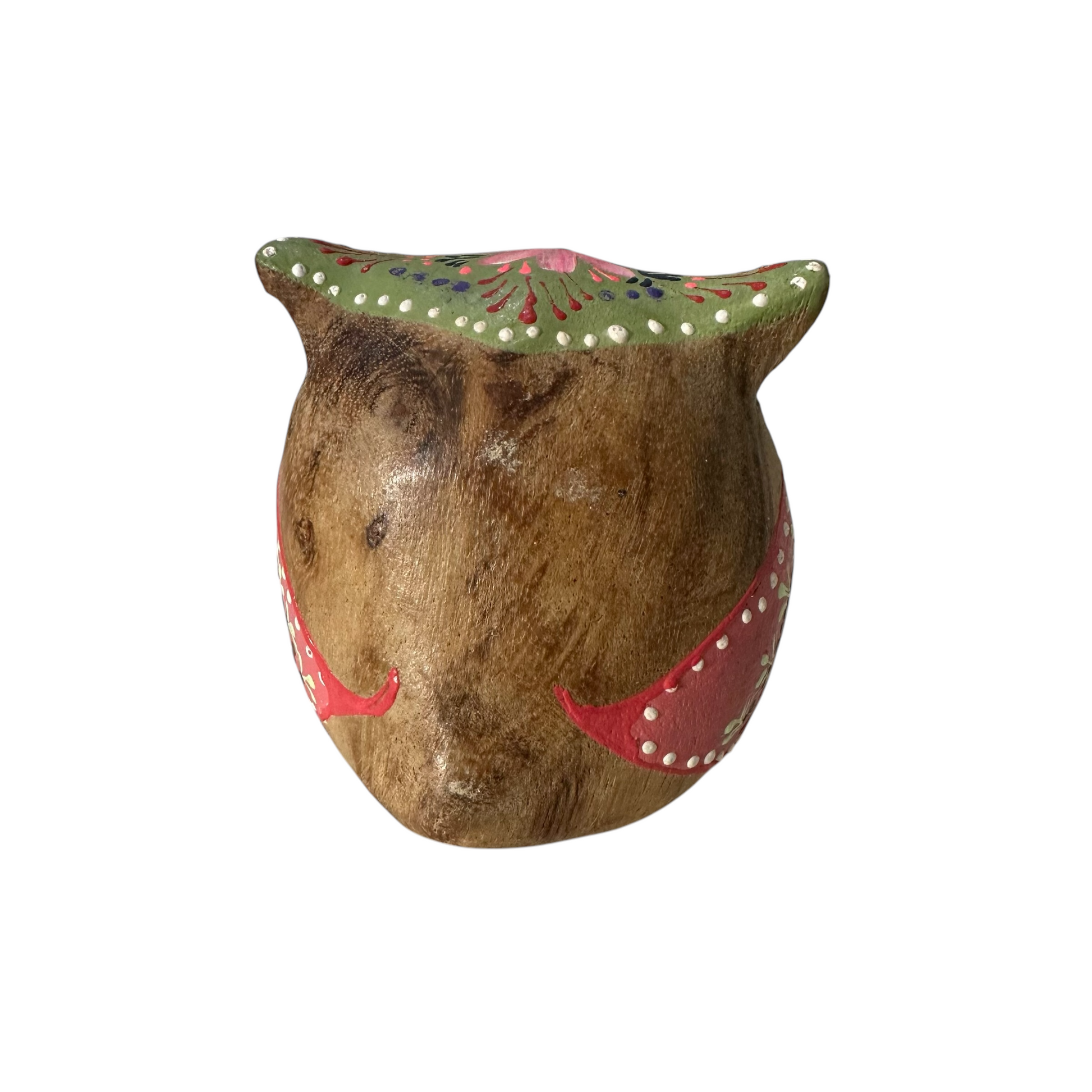 Hand-Painted Wooden Owl Figurine - Purple Eyes & Yellow Beak