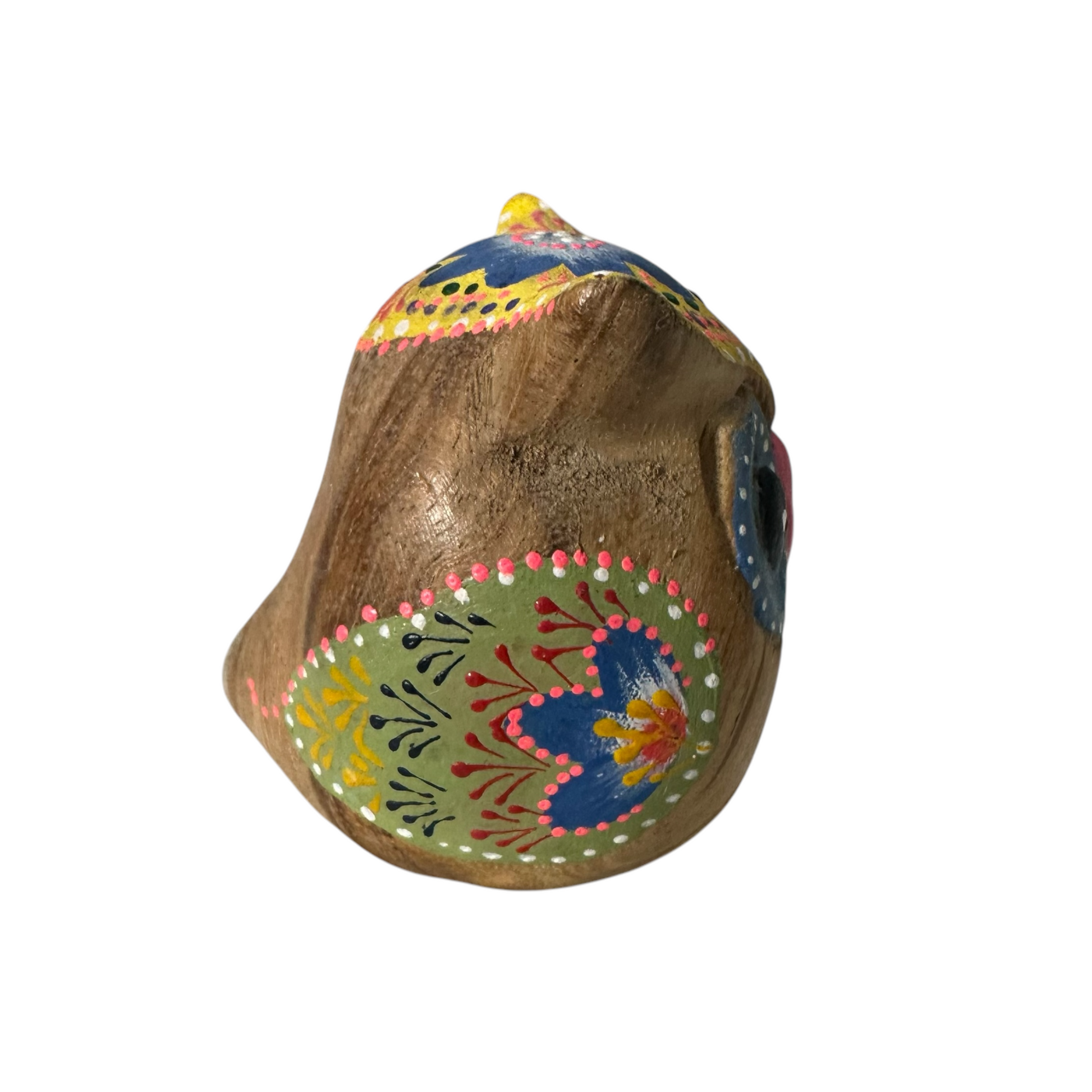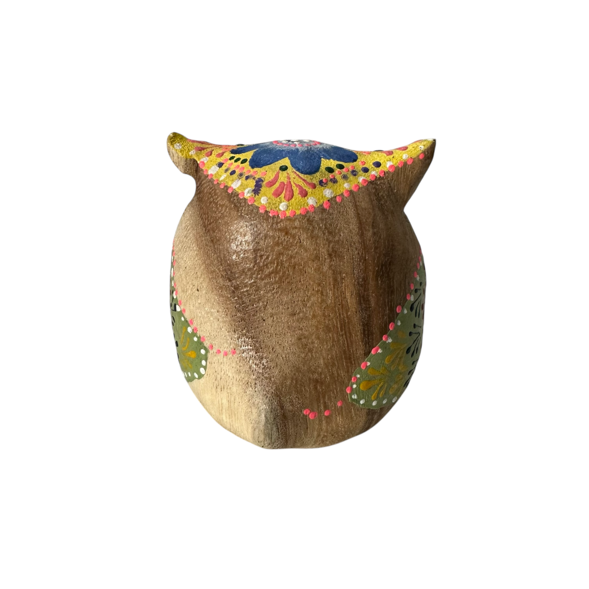 Hand-Painted Wooden Owl Figurine - Pastel Pink & Blue Theme