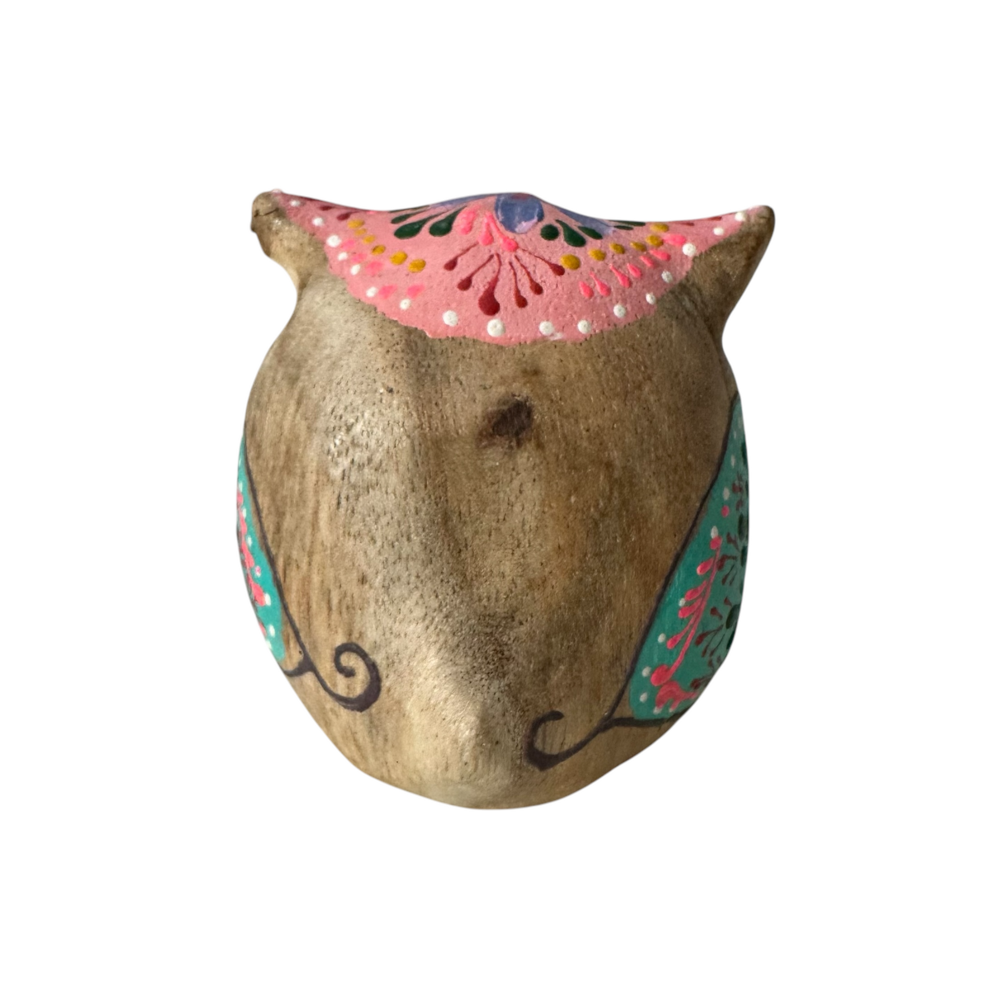 Hand-Painted Wooden Owl Figurine - Pink Blue & Floral Patterns