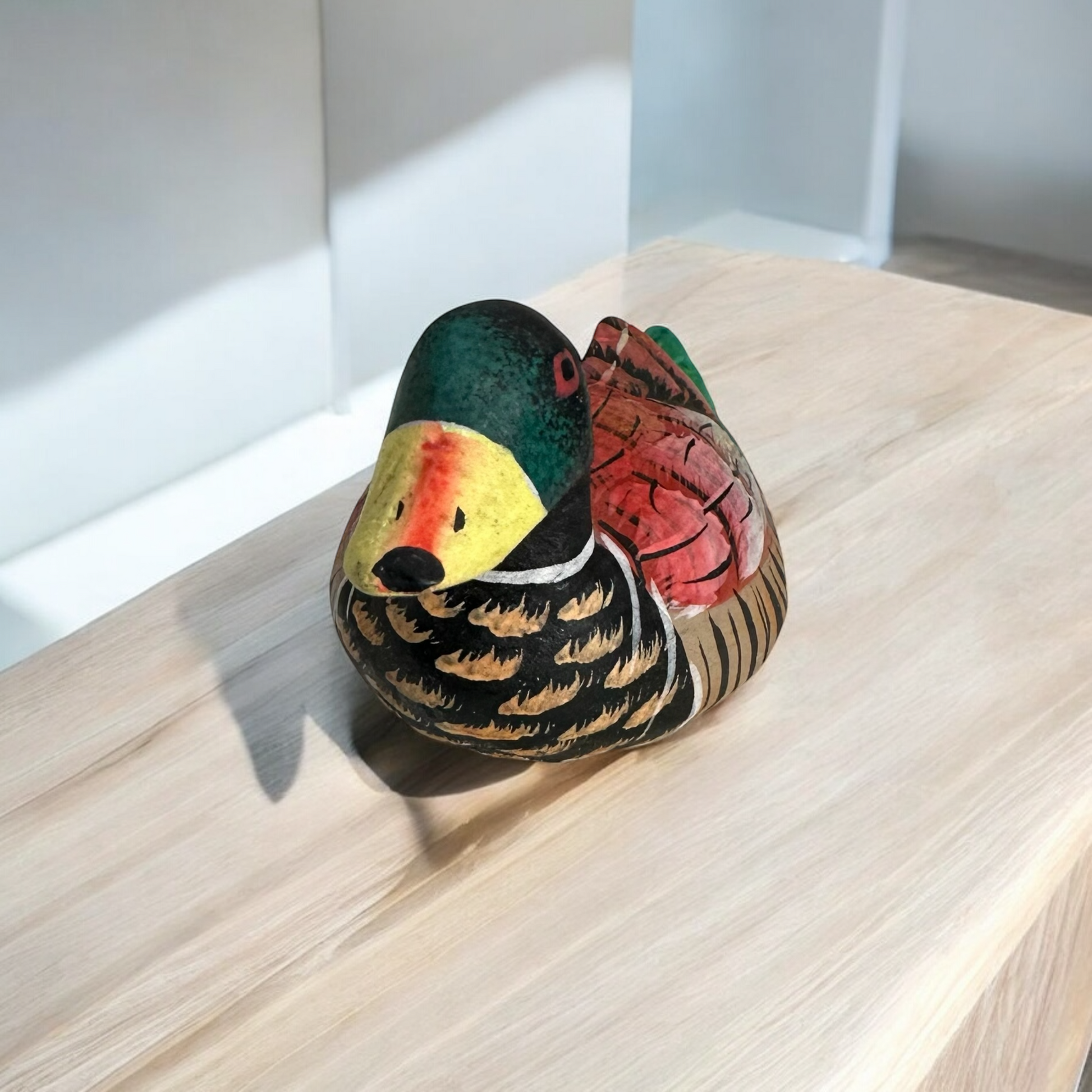 Add a rustic touch to your home decor with this beautifully handcrafted wooden duck figurine. Featuring intricate hand-painted details and a polished finish, this piece brings a sense of nature indoors. Ideal for shelves, mantels, or as a charming centerpiece.