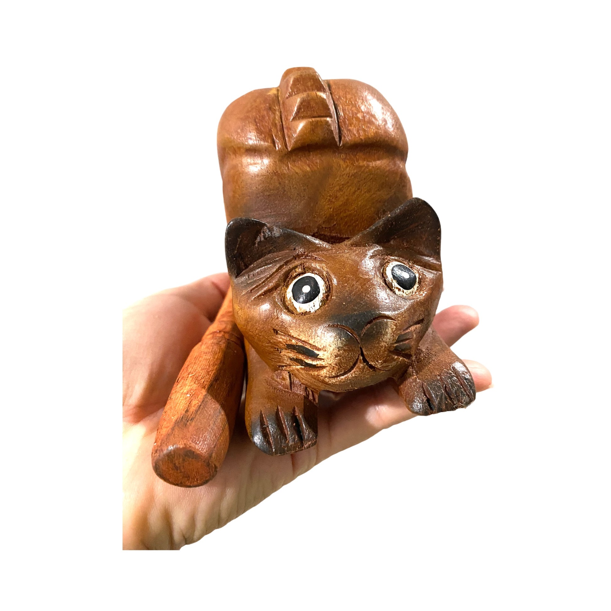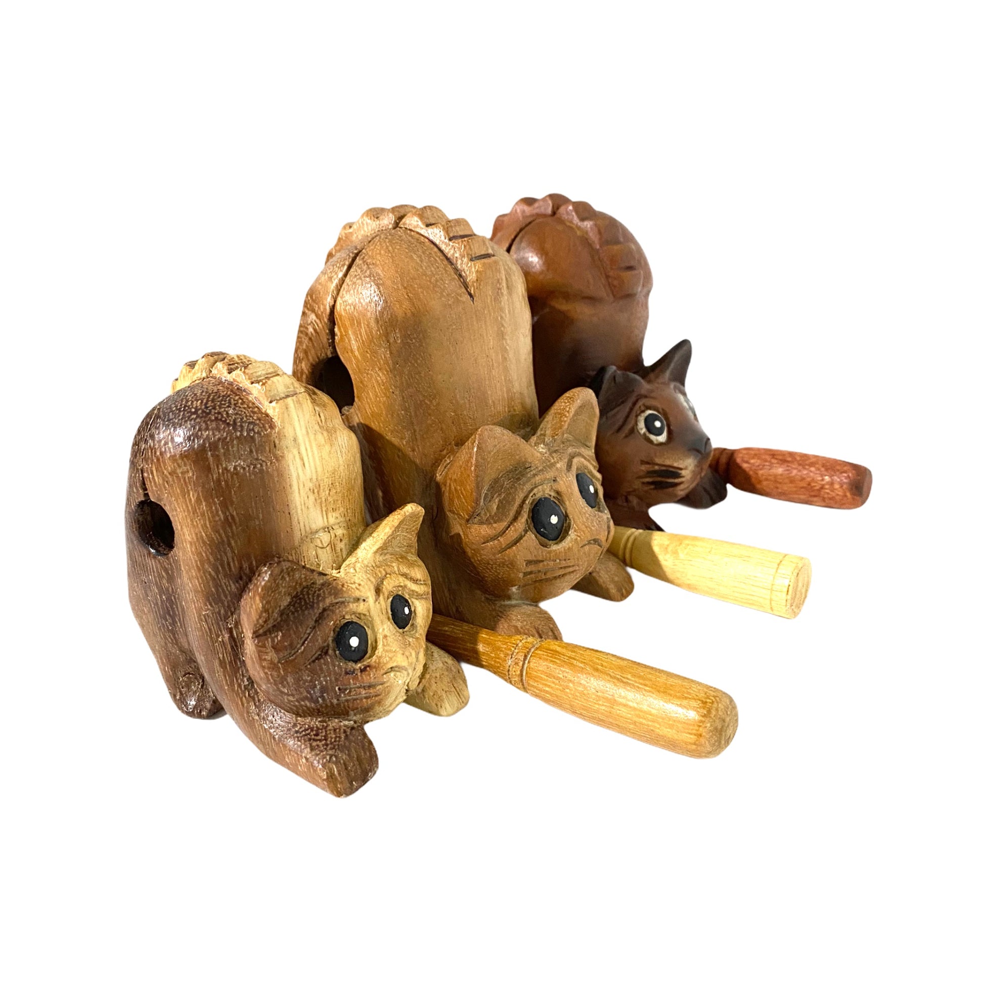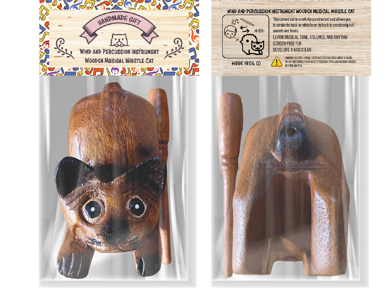 4" Musical Wooden Cat Percussion Whistle Instrument