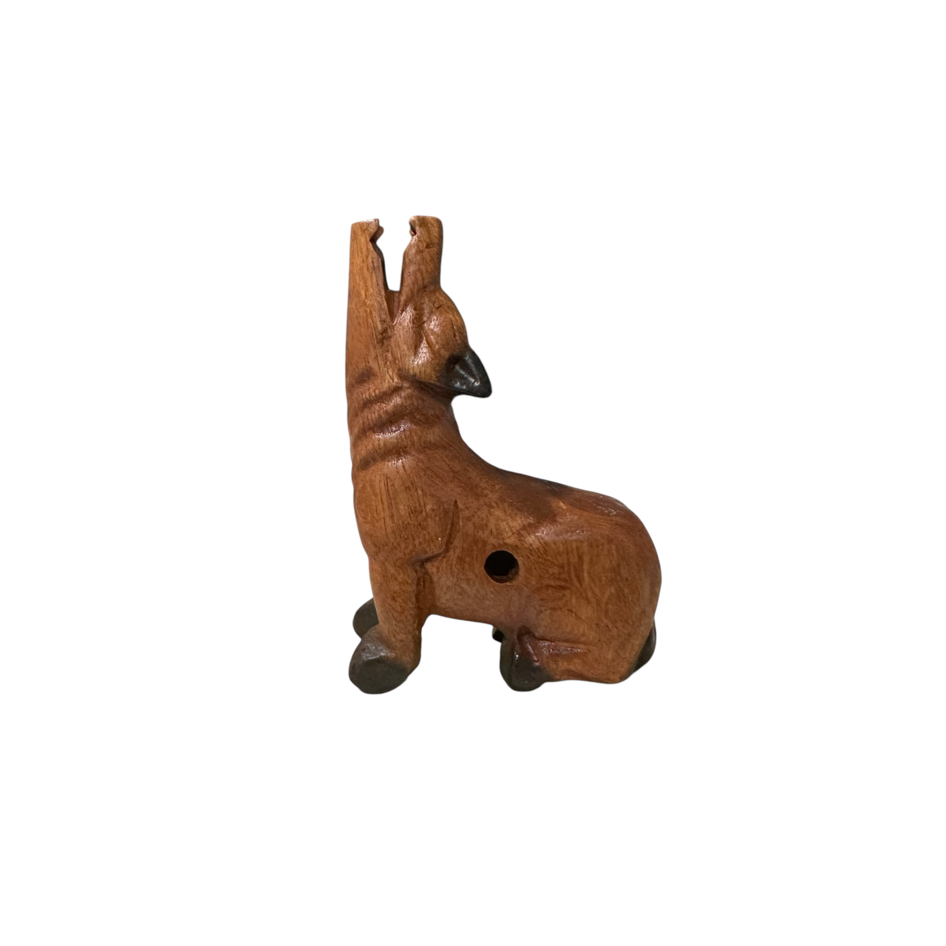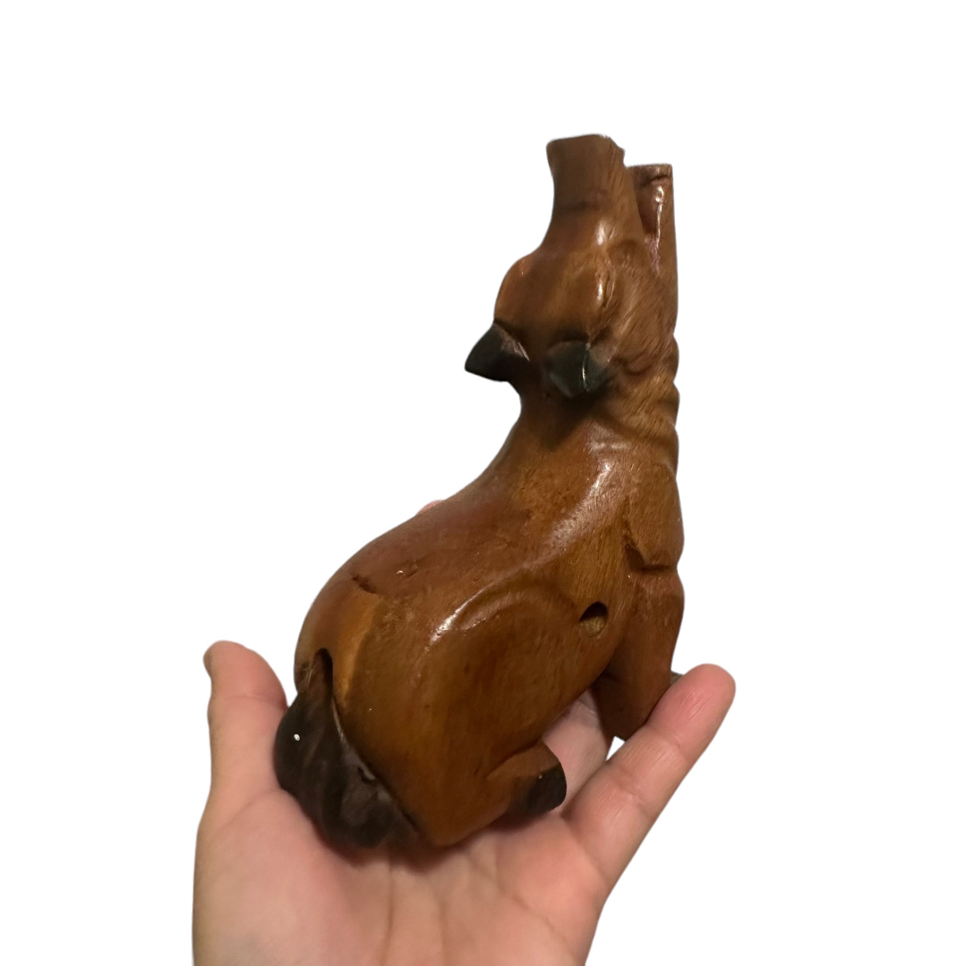 Make a call of the wild-literally; from the comfort of your own home! You can recreate the magical and mysterious wolf’s howl in seconds when you blow into this wooden wolf whistle. Designed and hand crafted in Thailand, this wooden wolf whistle will provide hours of entertainment for your children. This lightly stained wolf was carved with every last detail in mind, resulting in a quality musical instrument that you just won’t find in the stores. A unique gift to give, the wolf whistle will not only make for a fun toy for children, but a unique decorative item to add to rooms in your home that have an outdoor, woodsy look and feel. Consider giving the wolf whistle as a gift to the Boy Scout in your family or if your child’s school mascot is a wolf. Because it is made to last, you will enjoy blowing in your wolf whistle for years to come!