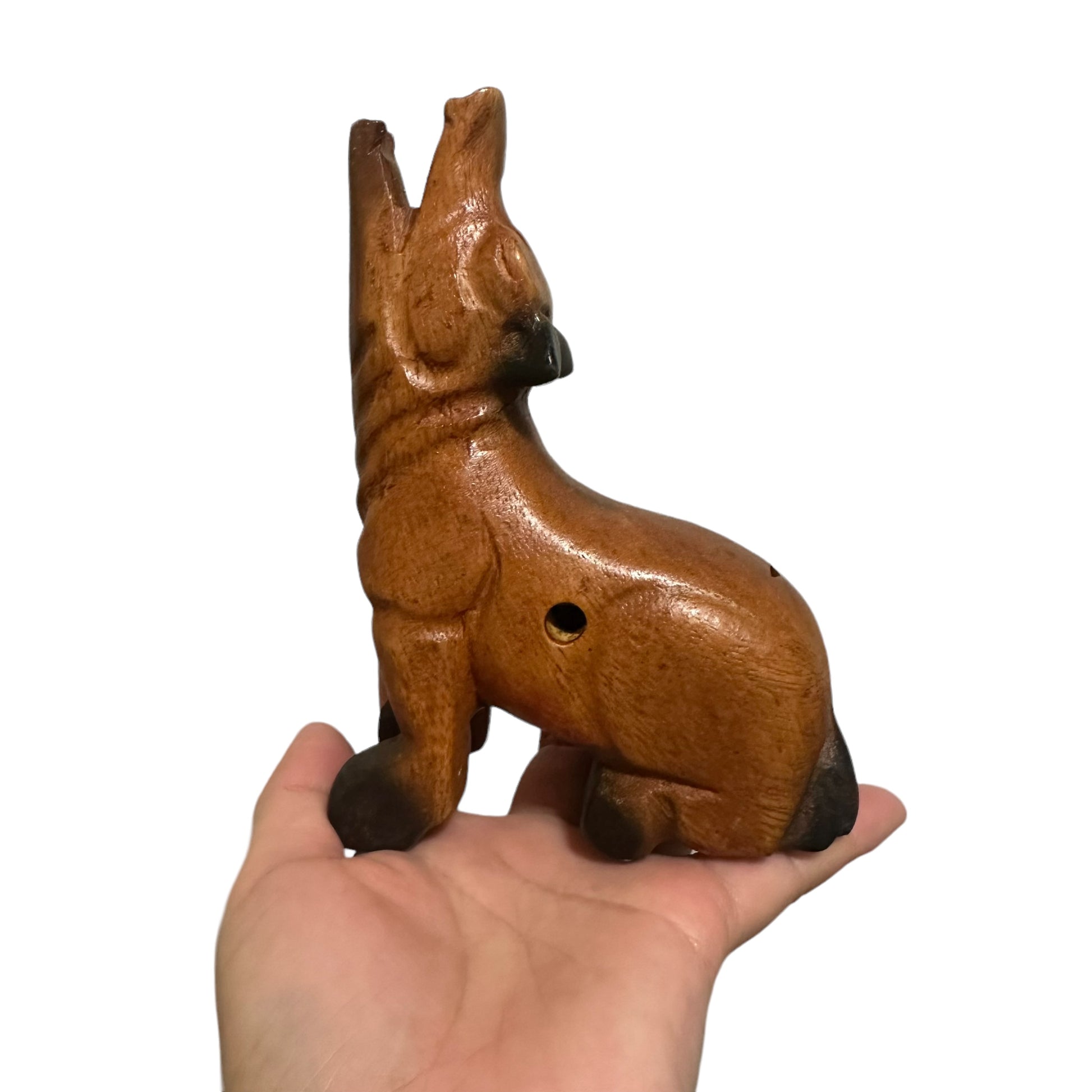 4.5" Small Dark Oak Wolf Musical Whistle Instrument