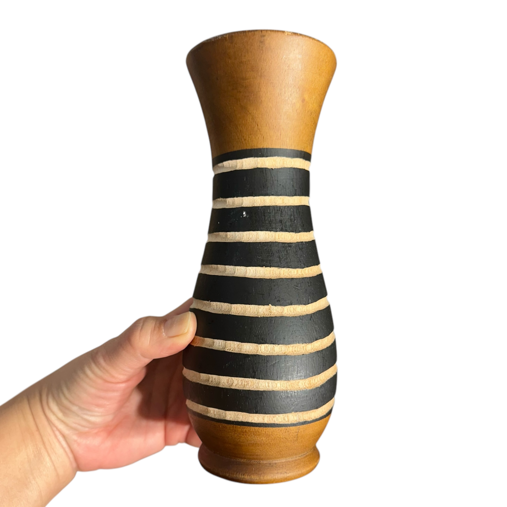 Tall Handcrafted Mango Wood Vase Bee Pattern
