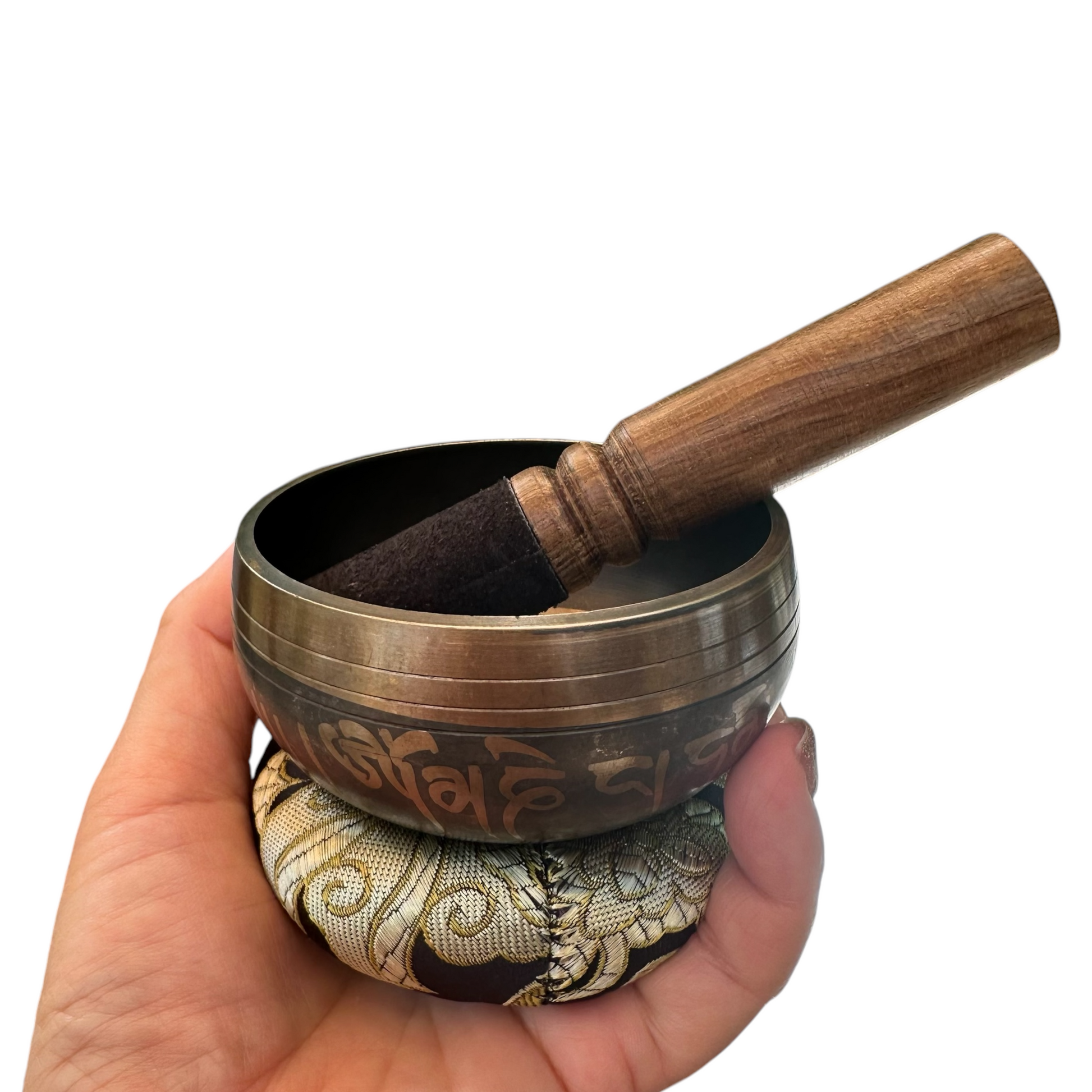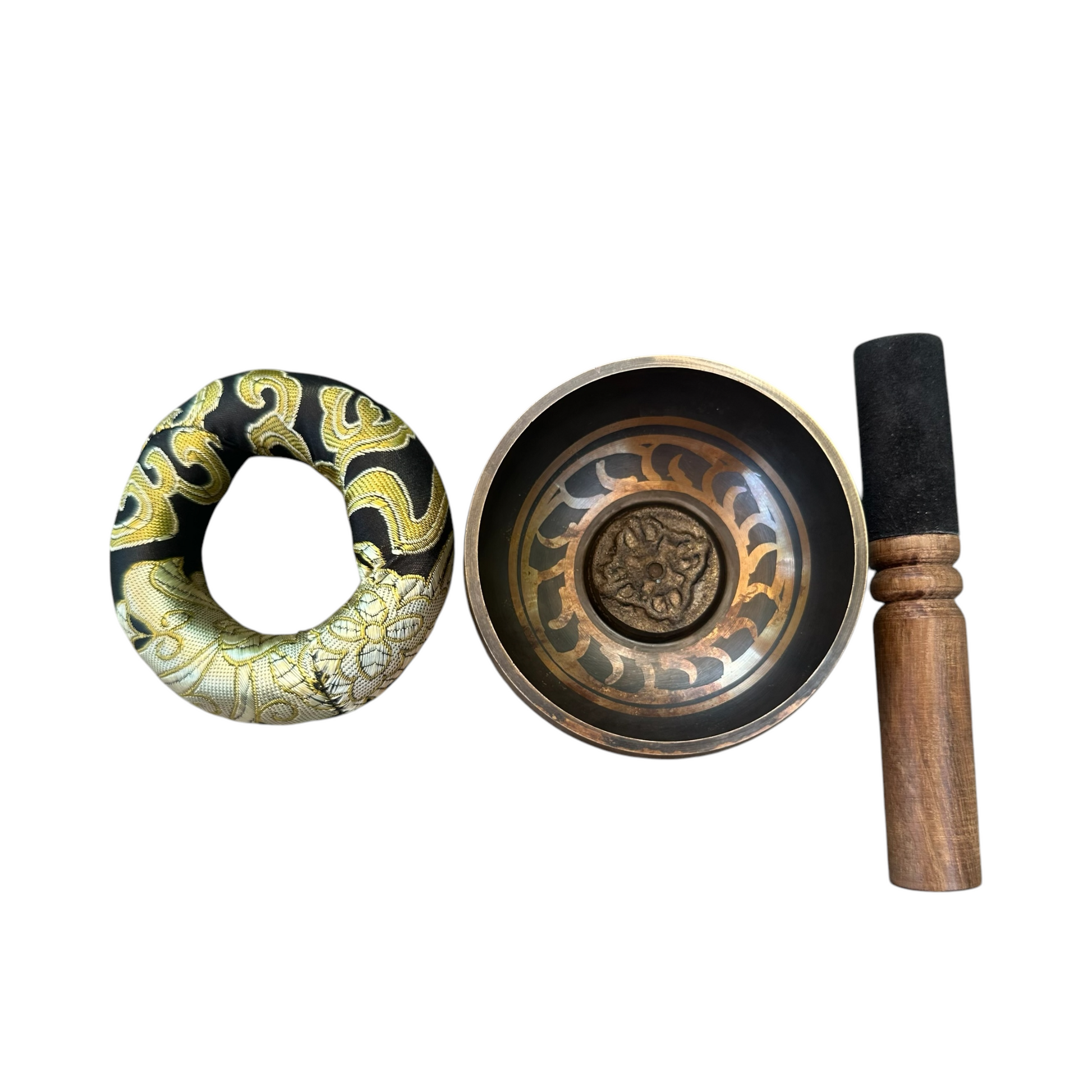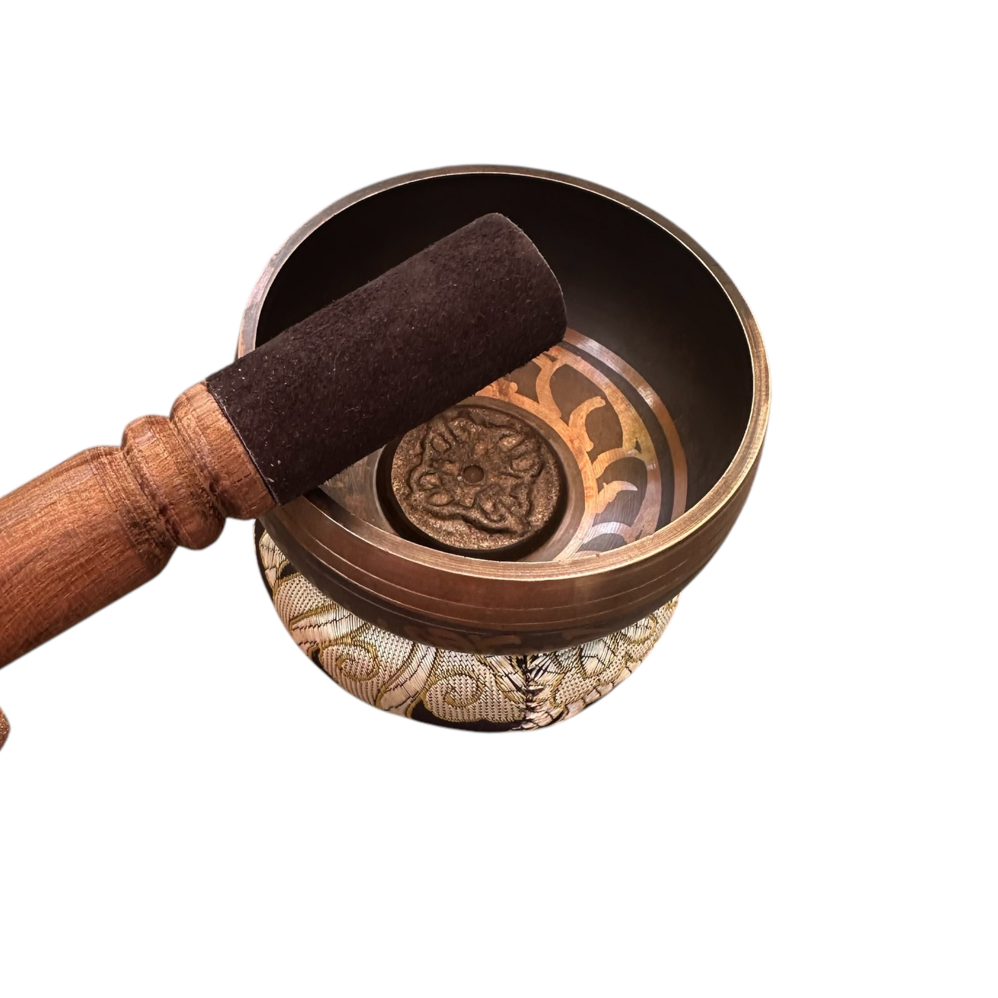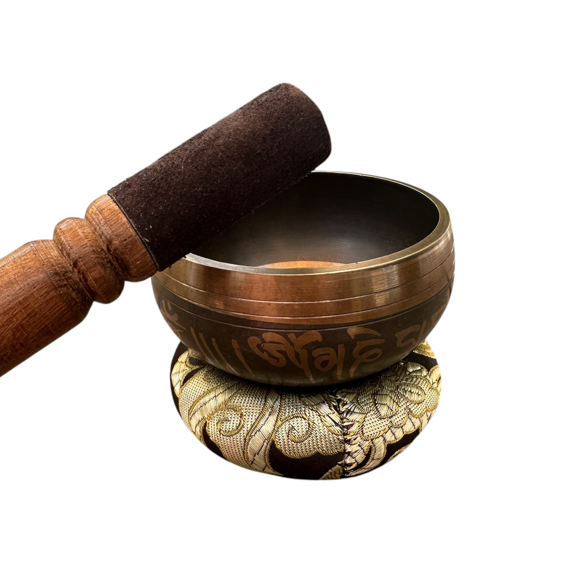 Tibetan Singing Bowl Set – Handcrafted Bronze Sound Bowl with Wooden Mallet & Silk Cushion – Meditation & Sound Healing Tool