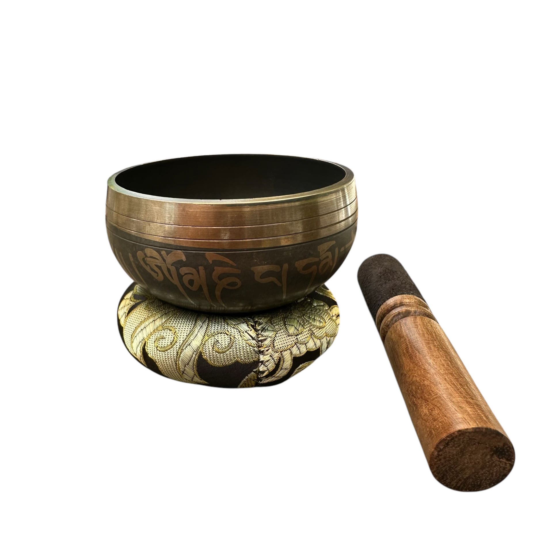 Elevate your meditation practice with our Tibetan Singing Bowl Set, handcrafted from bronze and etched with sacred script. This authentic sound bowl produces calming, harmonic vibrations when gently struck or played in a circular motion.