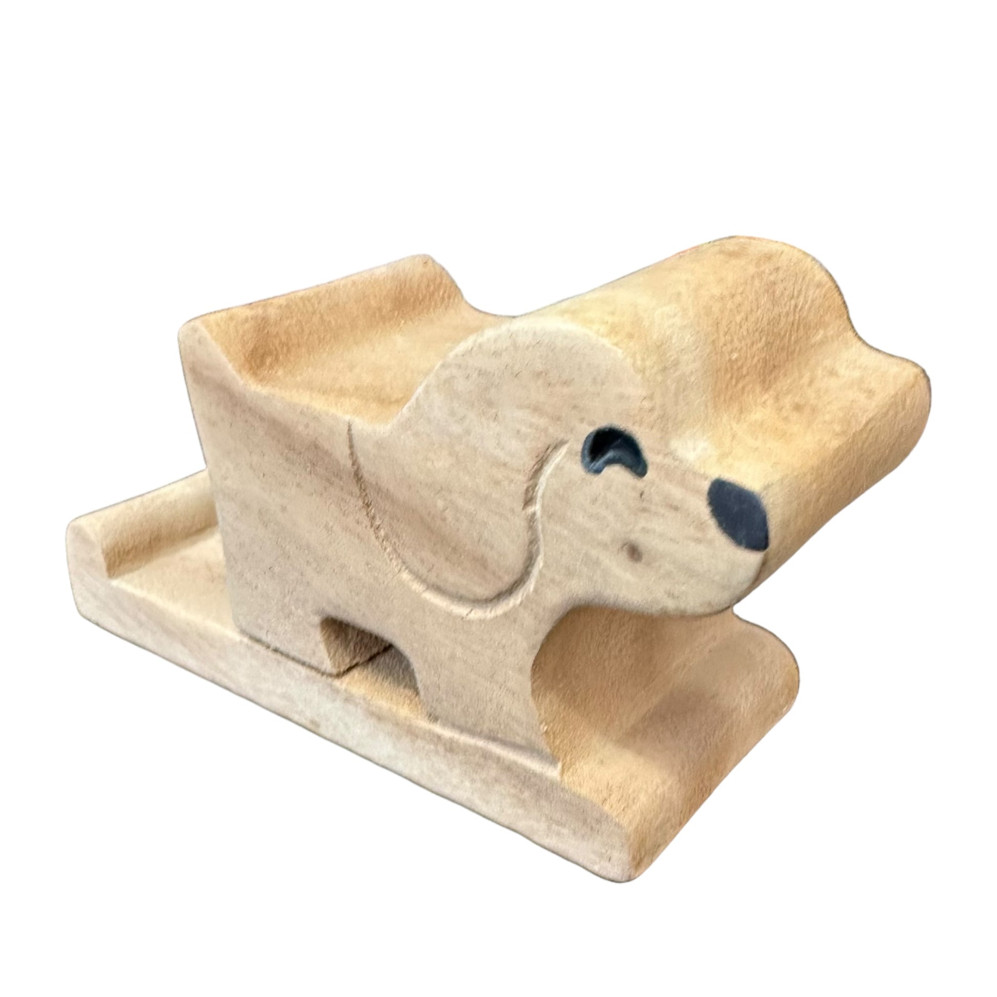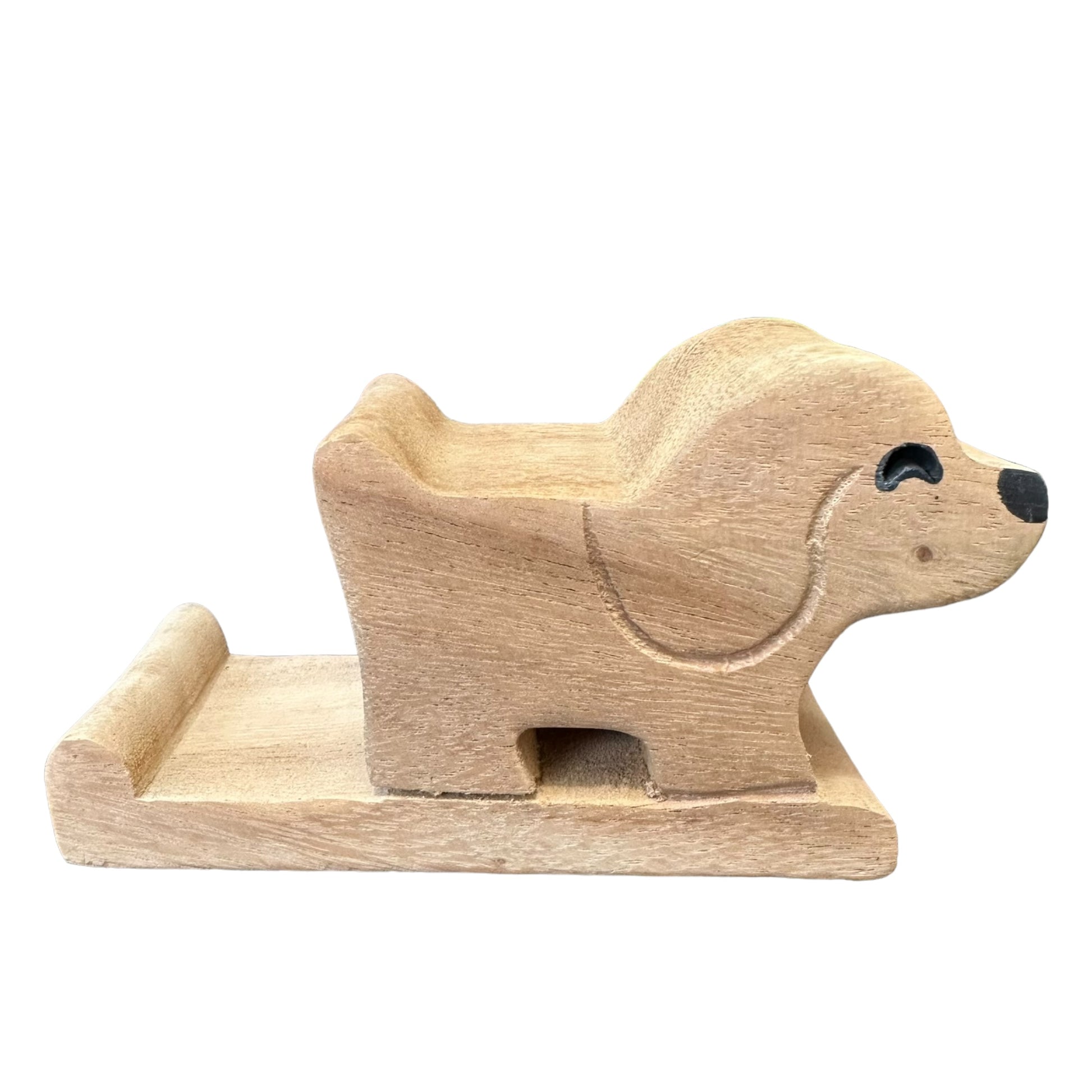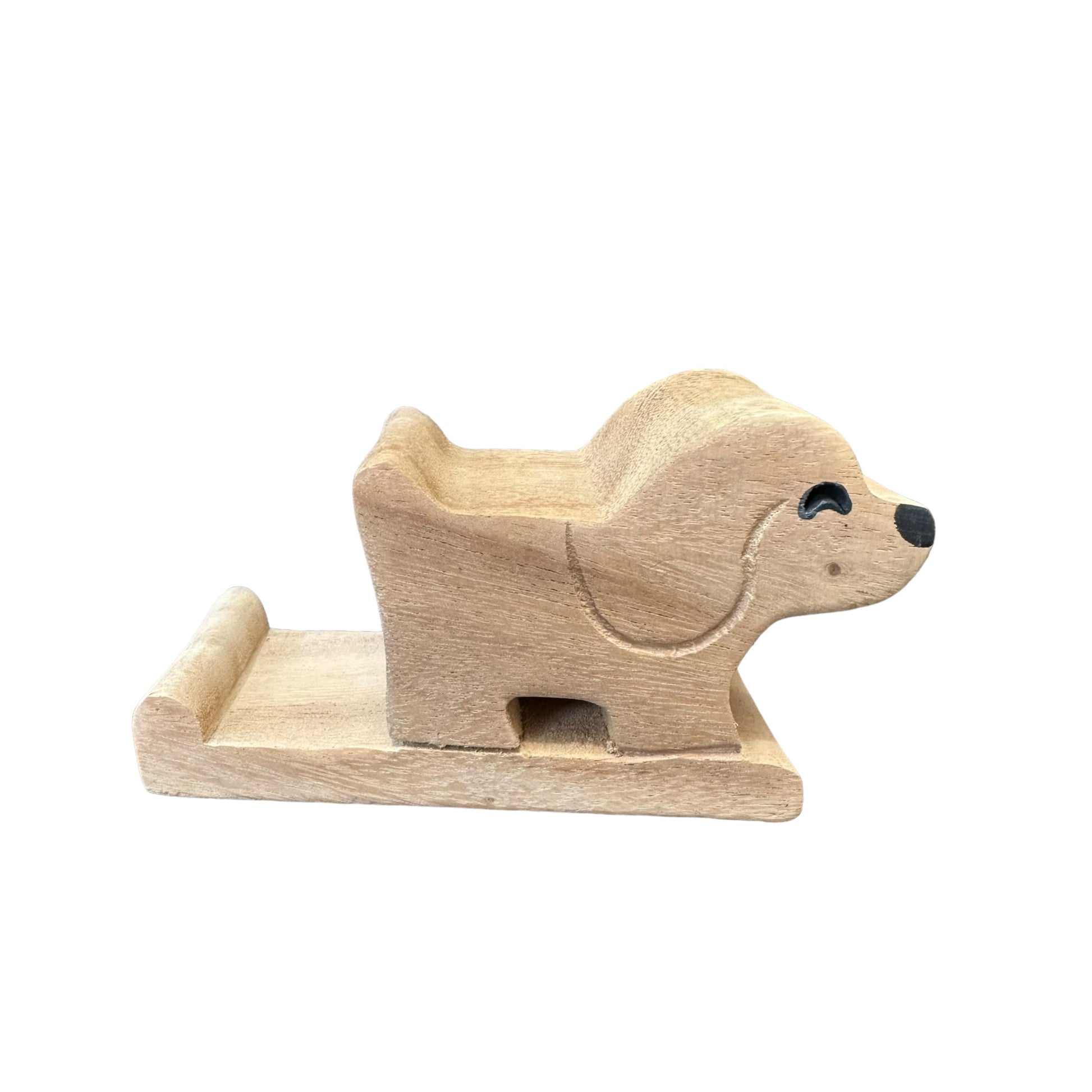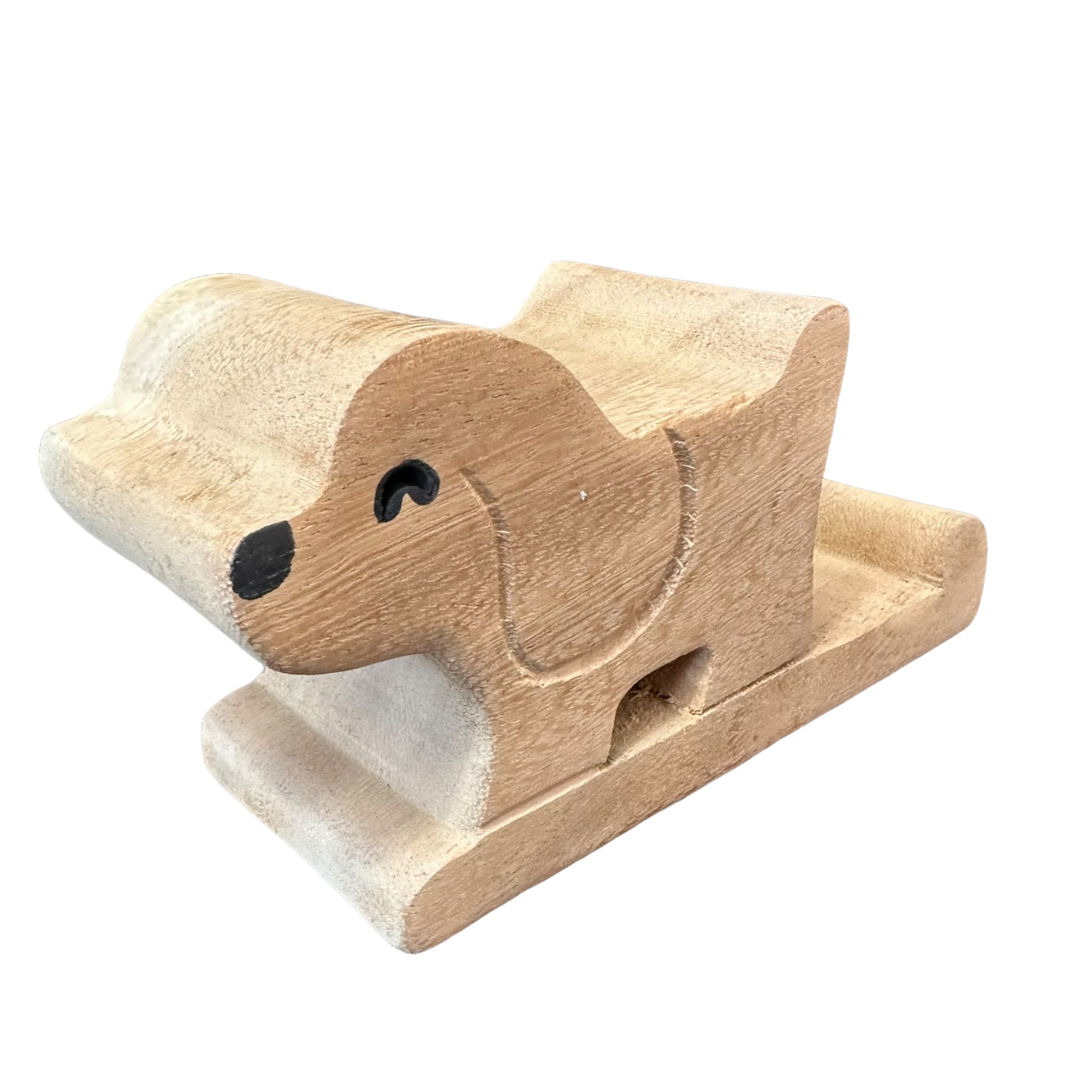 a delightful blend of functionality and charm. Crafted from natural wood, this adorable stand securely holds your phone in portrait or landscape mode. Perfect for dog lovers or as a unique gift, it adds a touch of whimsy to any desk or nightstand.