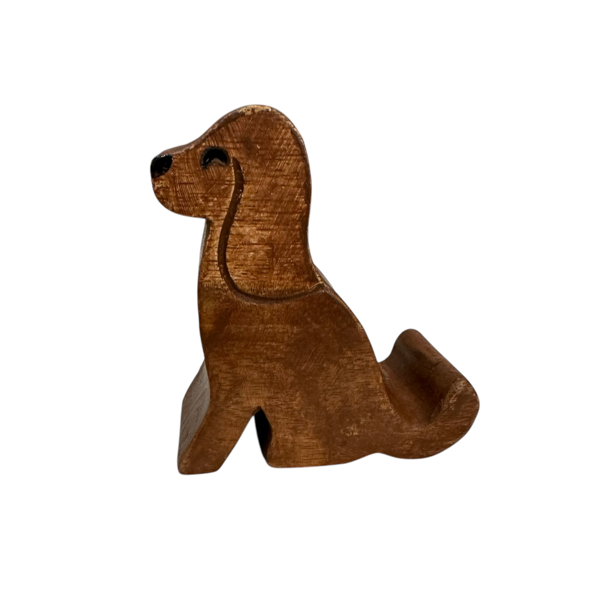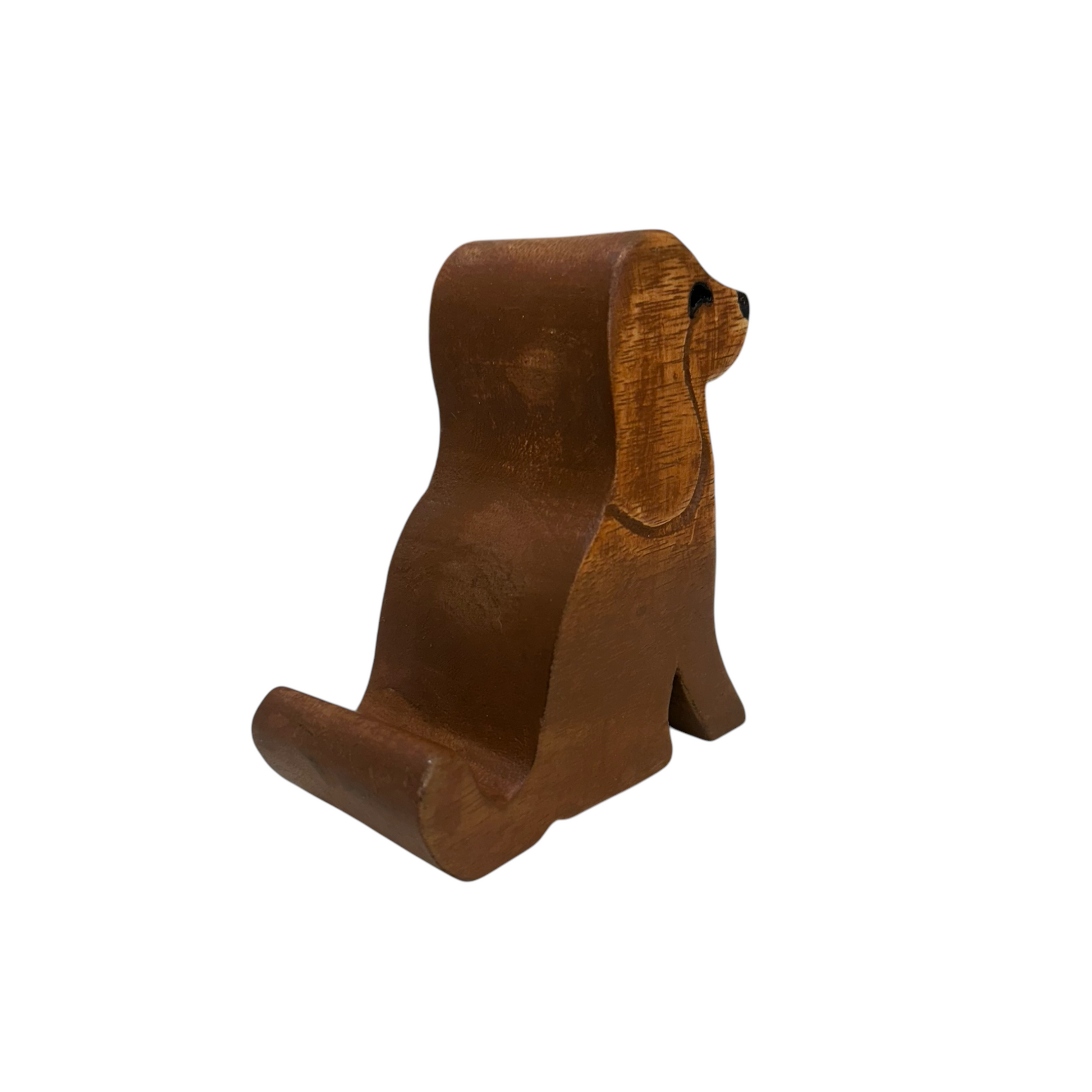 a delightful blend of functionality and charm. Crafted from natural wood, this adorable stand securely holds your phone in portrait or landscape mode. Perfect for dog lovers or as a unique gift, it adds a touch of whimsy to any desk or nightstand.