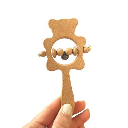 Wooden Bear Rattle Shaker – Gray Bell Edition