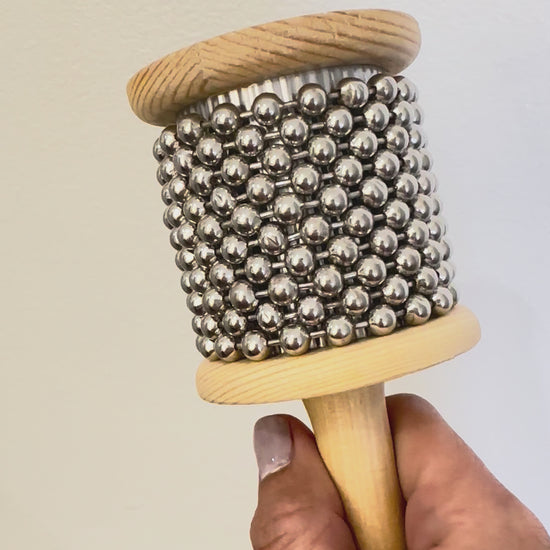 Made with a smooth natural wood handle and a band of tightly wrapped metal beads, this instrument creates a crisp, rattling sound when you twist or shake it. It’s simple to play but gives rich, professional rhythm effects used in Latin, pop, worship, classroom music, and more.