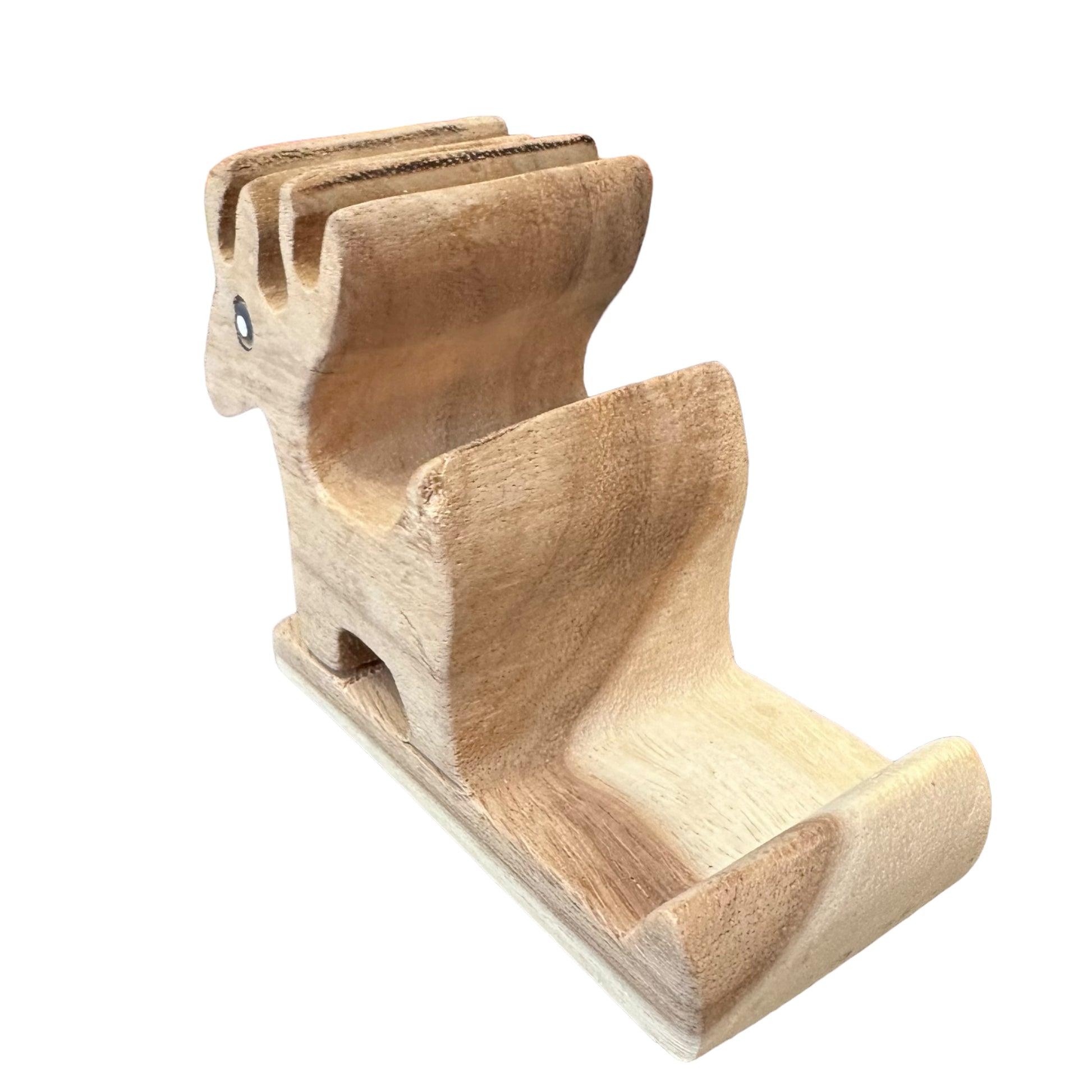 a delightful blend of functionality and charm. Crafted from natural wood, this adorable stand securely holds your phone in portrait or landscape mode. Perfect for deer lovers or as a unique gift, it adds a touch of whimsy to any desk or nightstand.