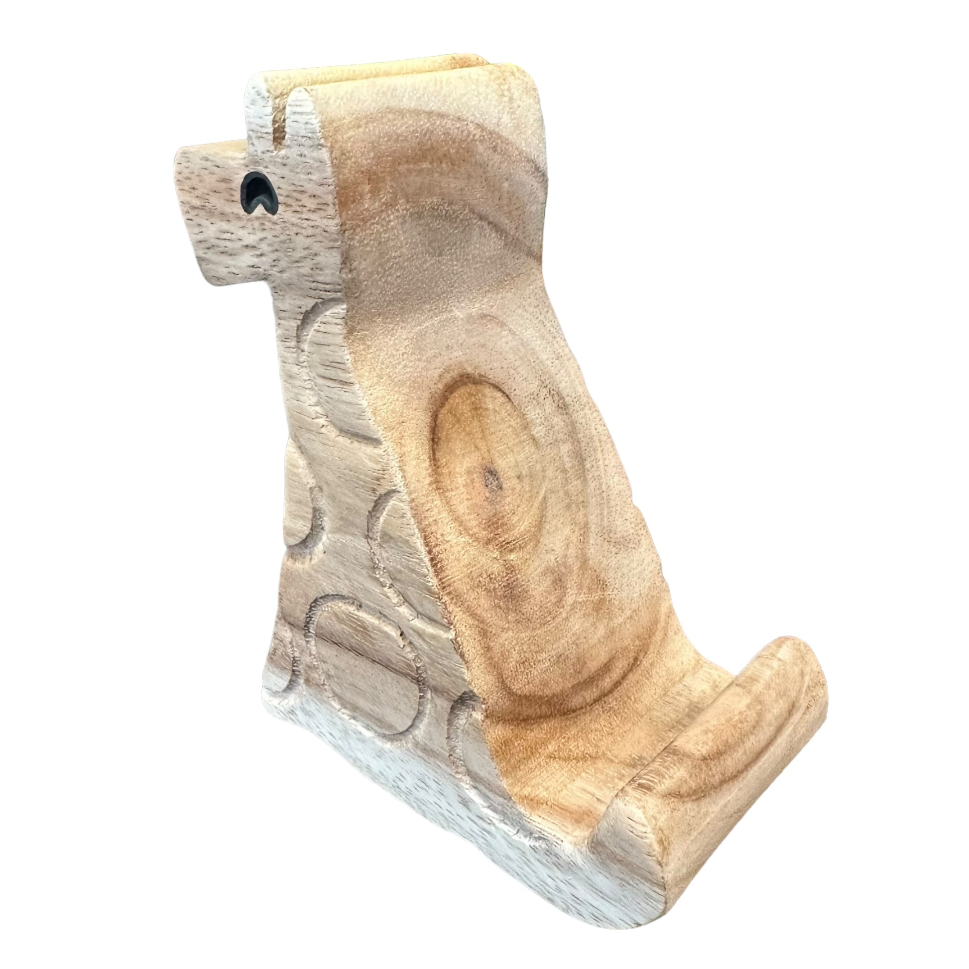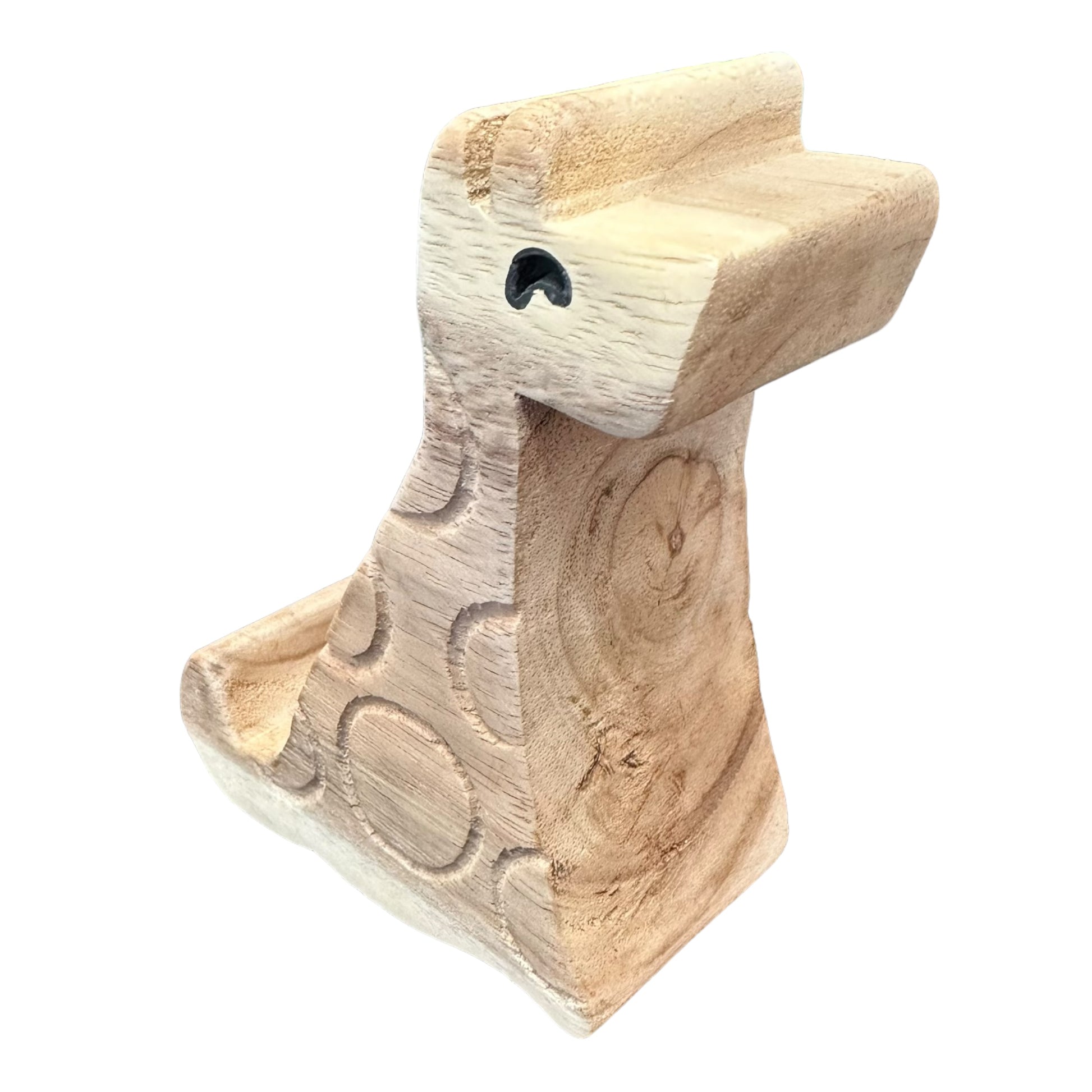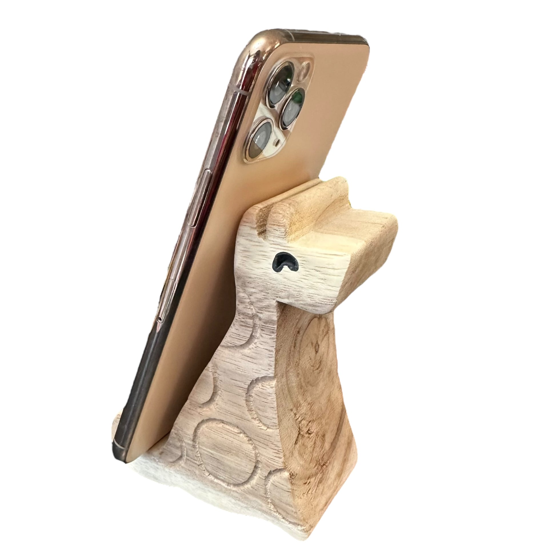 a delightful blend of functionality and charm. Crafted from natural wood, this adorable stand securely holds your phone in portrait or landscape mode. Perfect for giraffe lovers or as a unique gift, it adds a touch of whimsy to any desk or nightstand.