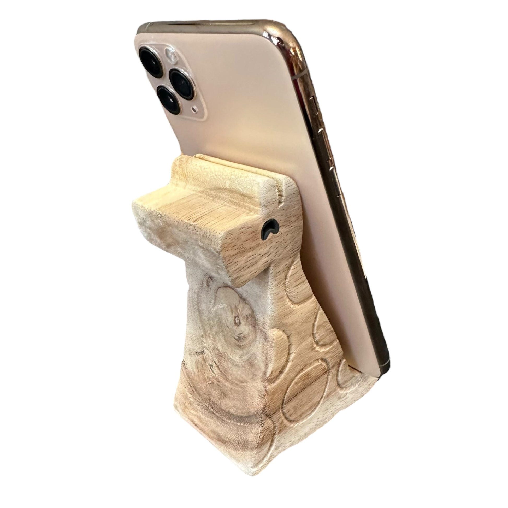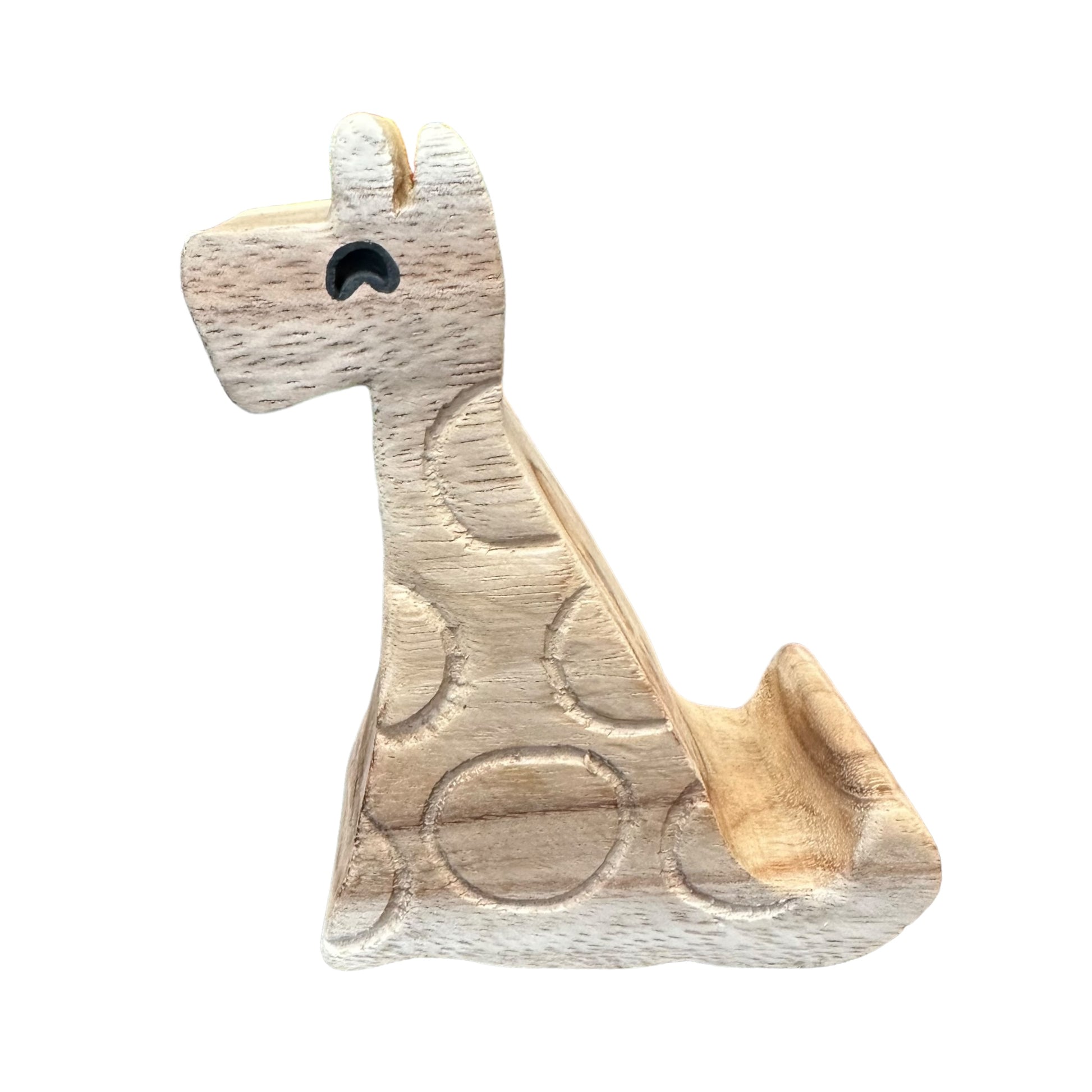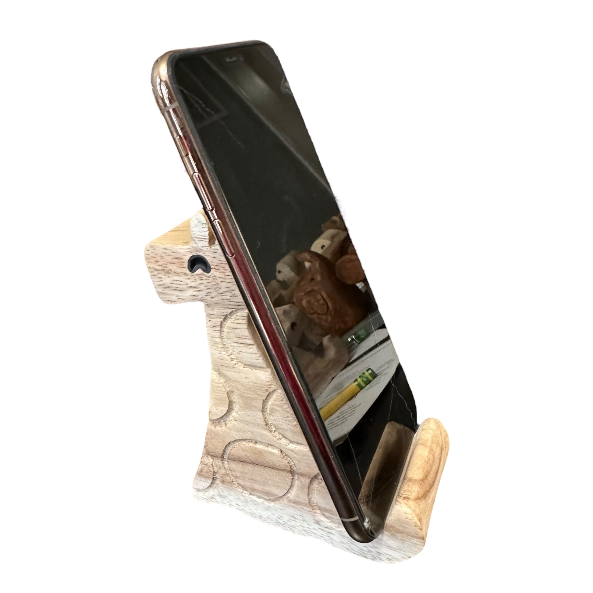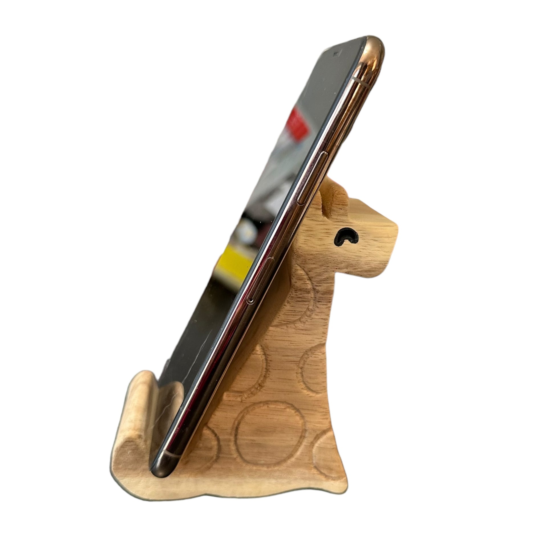 a delightful blend of functionality and charm. Crafted from natural wood, this adorable stand securely holds your phone in portrait or landscape mode. Perfect for giraffe lovers or as a unique gift, it adds a touch of whimsy to any desk or nightstand.