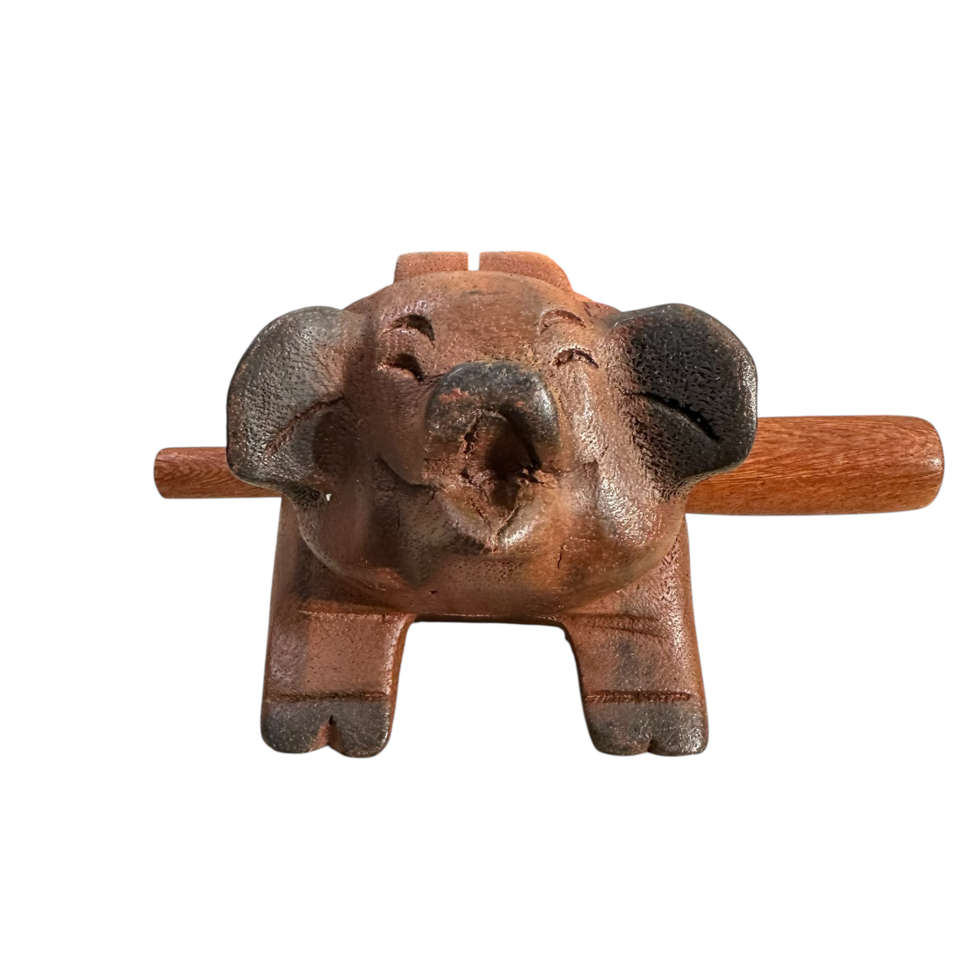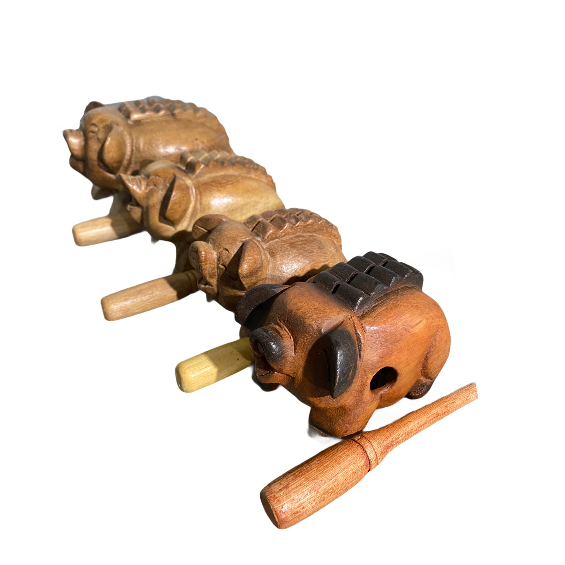 5" Dark Stained Wooden Musical Pig Percussion Instrument