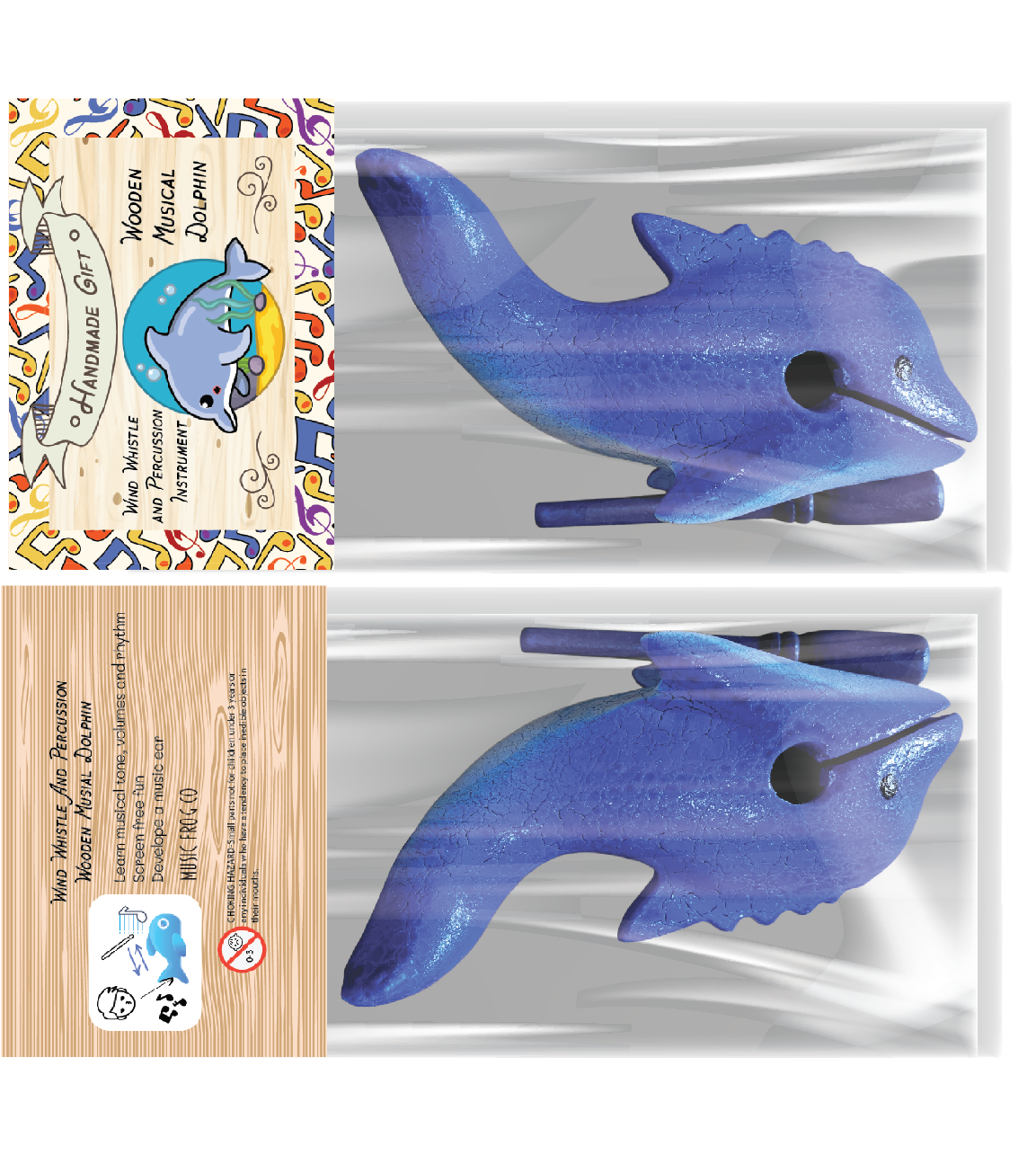 Light Blue Wooden Musical Whistle Dolphin Percussion Instrument