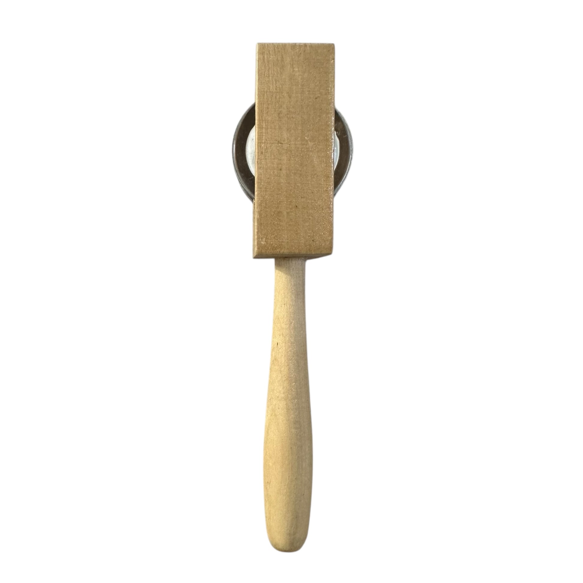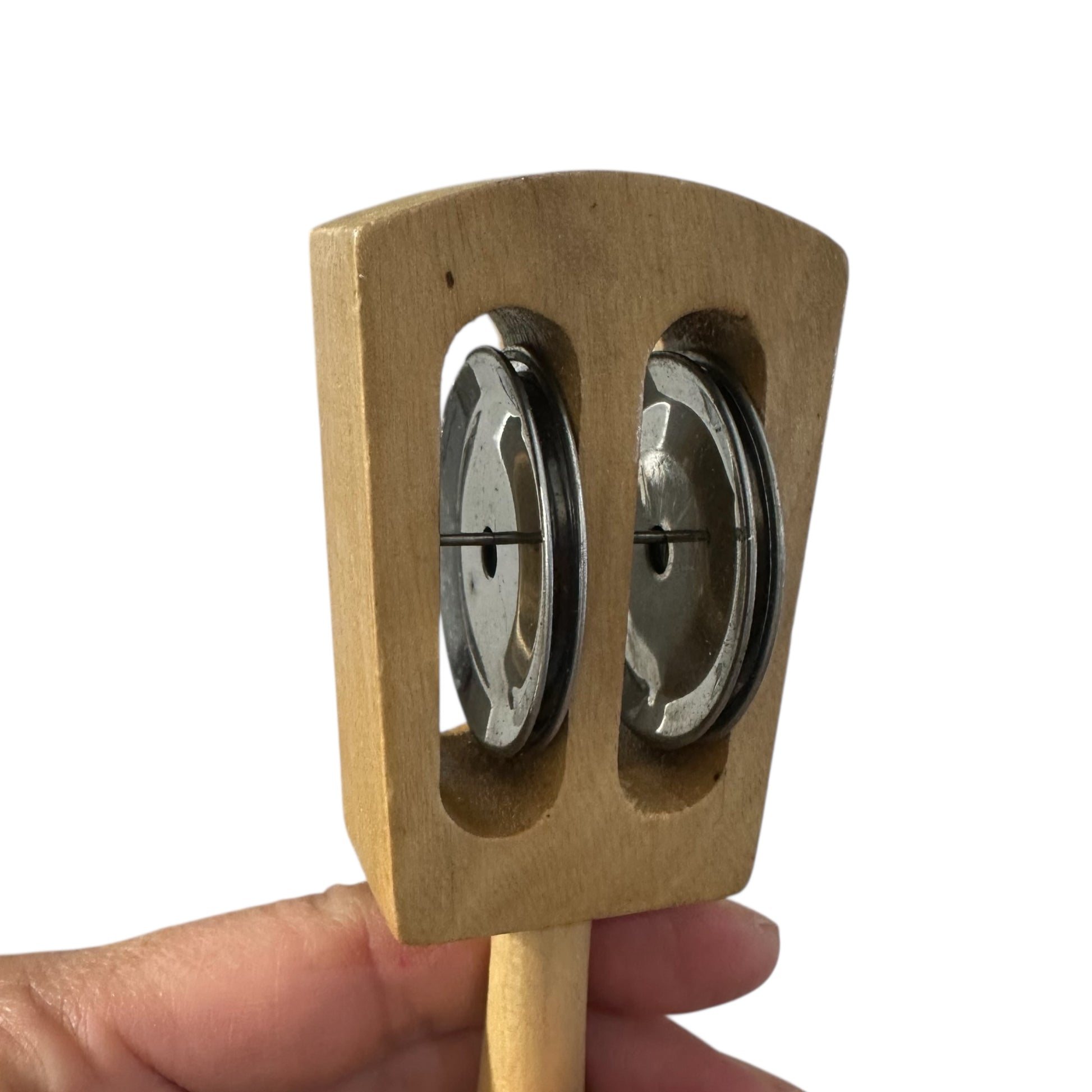 Introduce children to the joy of rhythm and sound with this natural wooden rattle instrument. Featuring two metal disks that spin when shaken, this lightweight and easy-to-hold instrument creates a bright and engaging sound that encourages children to explore music and rhythm in a fun, hands-on way.
